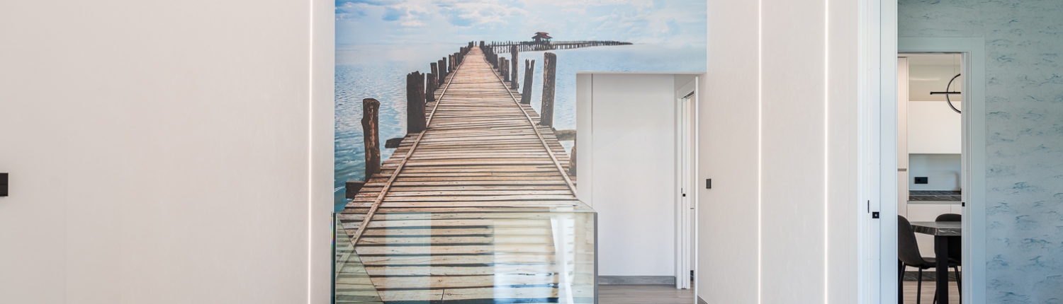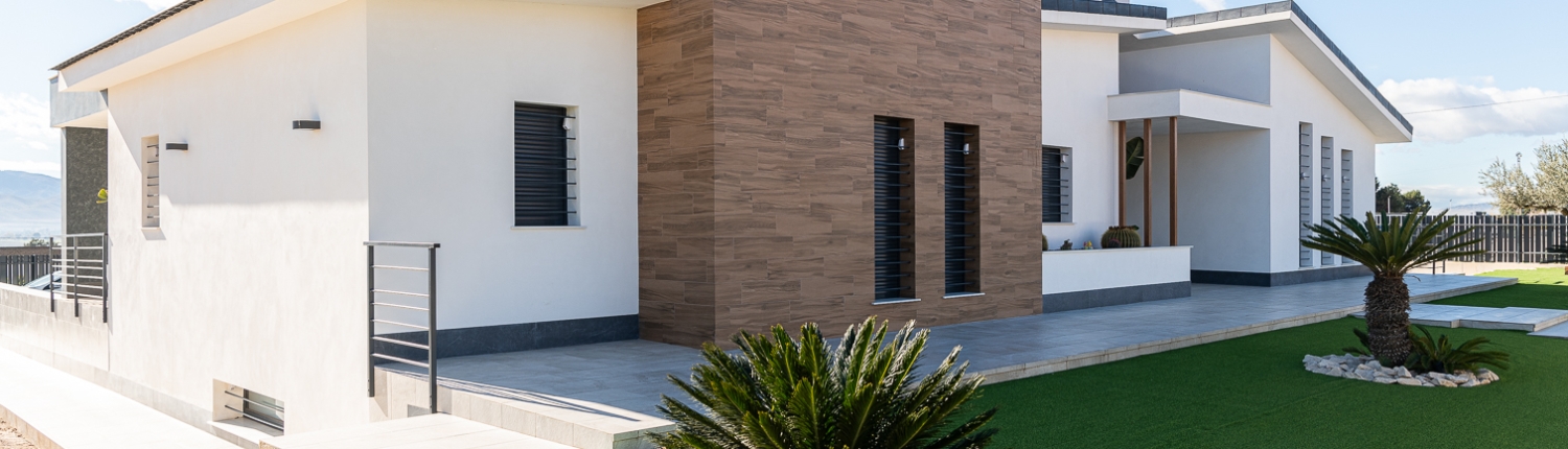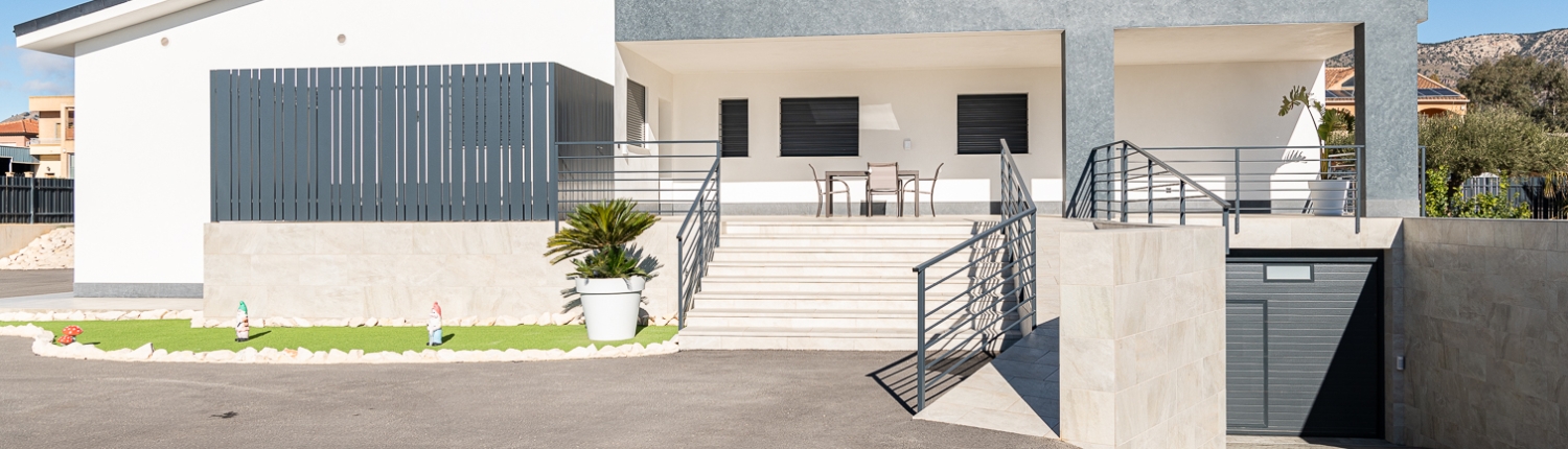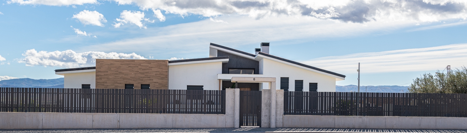Es en este enclave que se ha construido un vistoso chalet de líneas modernas y colores claros, con amplias terrazas en el exterior, y domótica y persianas en el interior.