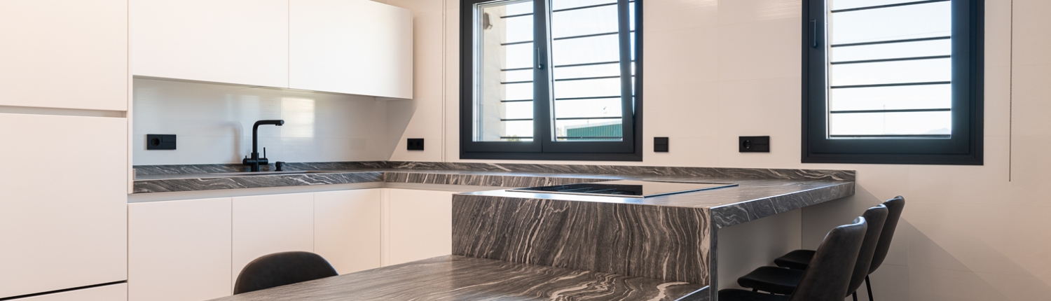 En la elección de los cerramientos, se decantaron por las ventanas de PVC porque reunían los requisitos de diseño, altas prestaciones y el tacto cálido del PVC frente al tacto más frío de los perfiles metálicos como el aluminio.