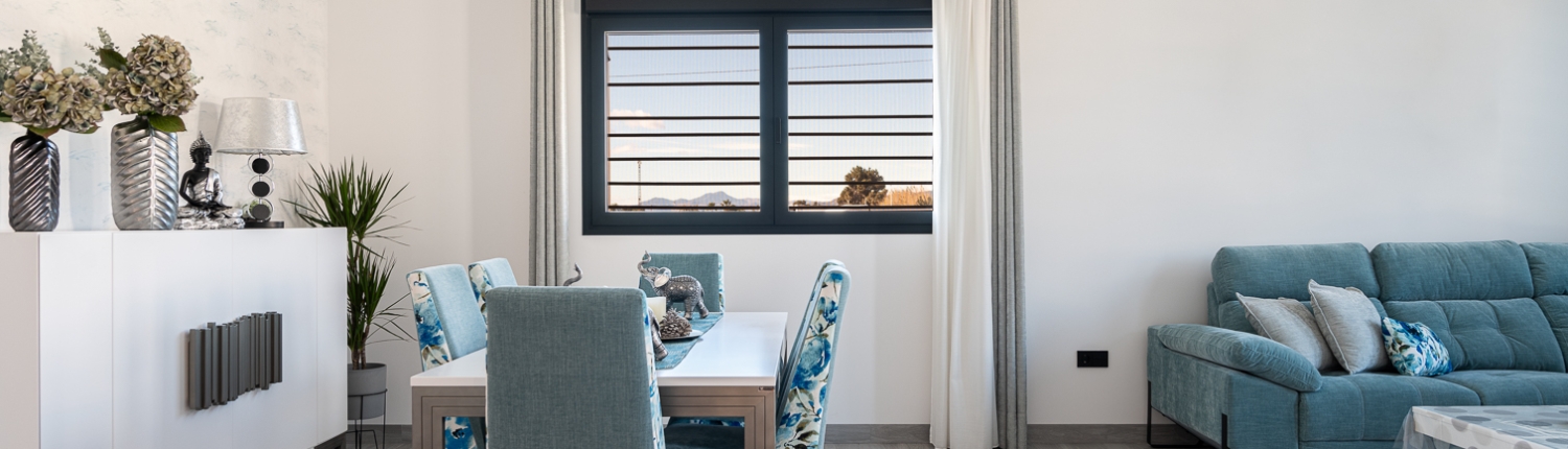 Éstos permiten un elevado aislamiento térmico, al mismo tiempo que un cuidado diseño acorde con estilo del chalet, aportando calidez a todas las estancias de la edificación.
