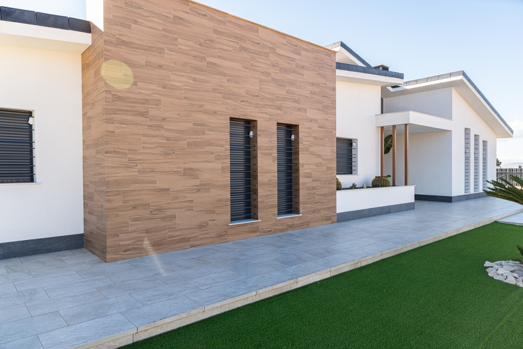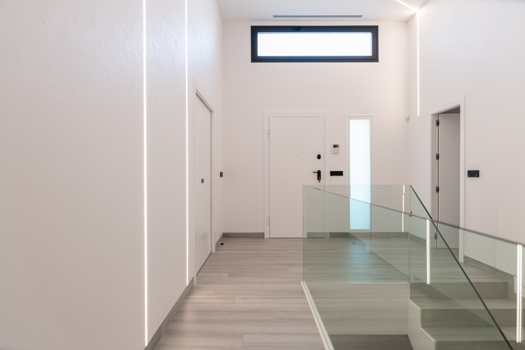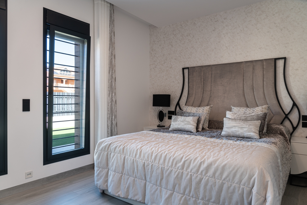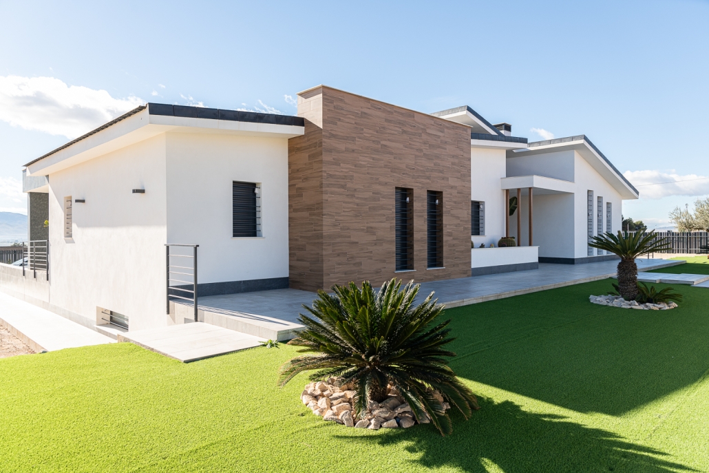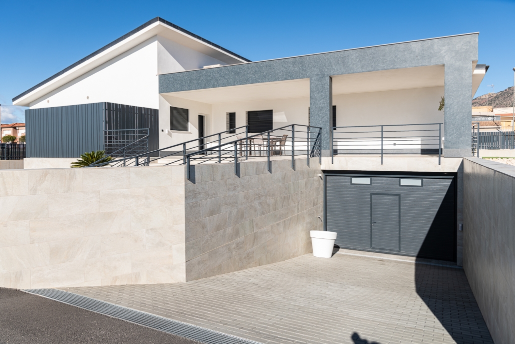 Es en este enclave que se ha construido un vistoso chalet de líneas modernas y colores claros, con amplias terrazas en el exterior, y domótica y persianas en el interior.