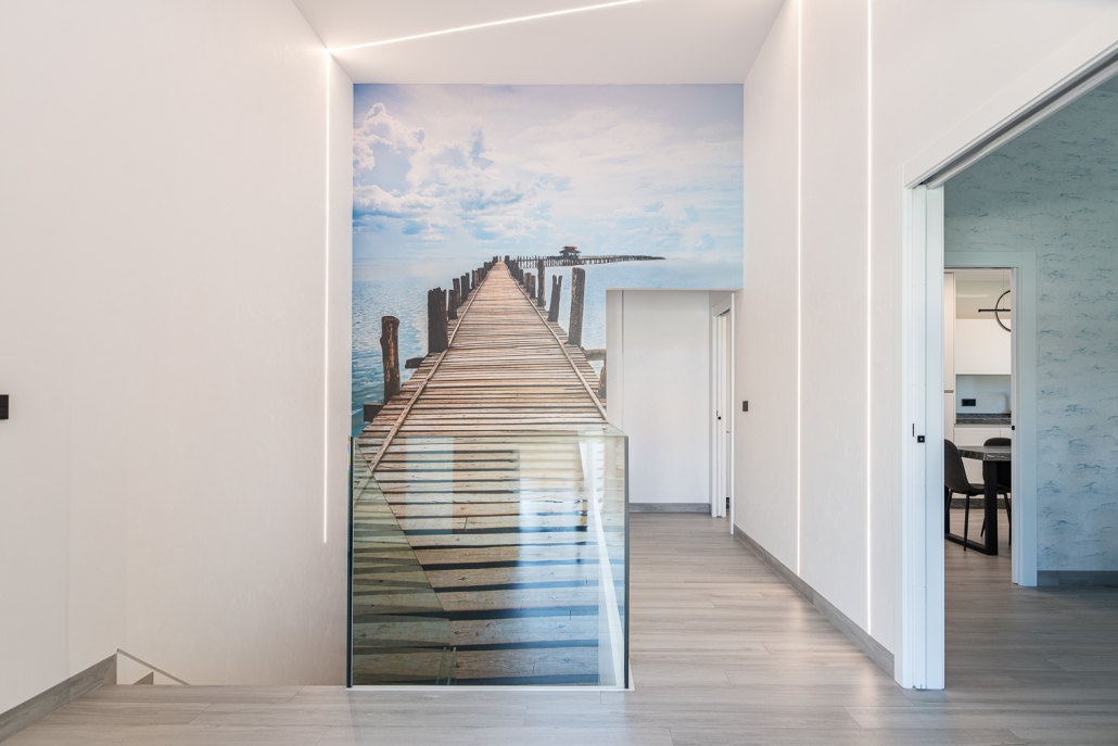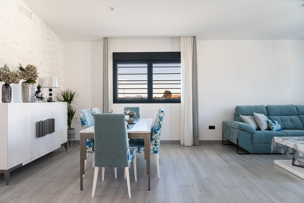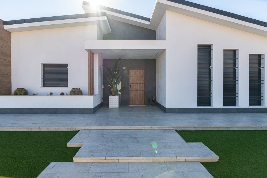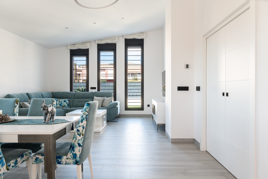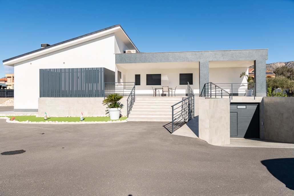 Es en este enclave que se ha construido un vistoso chalet de líneas modernas y colores claros, con amplias terrazas en el exterior, y domótica y persianas en el interior.